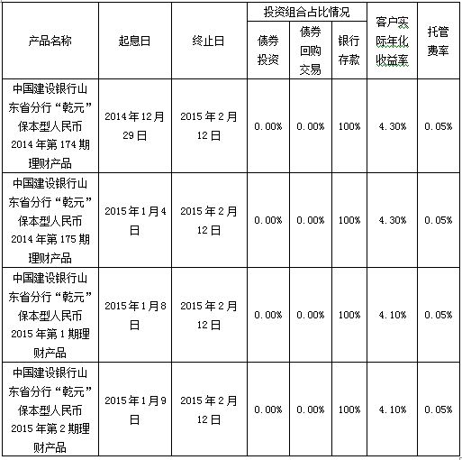 根据与投资者的约定,中国建设银行山东省分行发行的下列理财产品已经到期并完成资金兑付,现将有关情况公告如下: