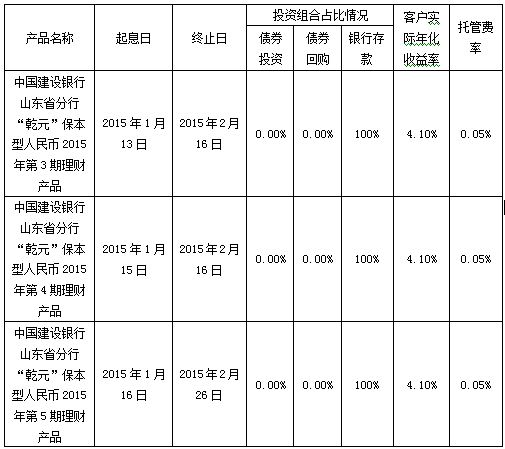 中国建设银行山东省分行“乾元”保本型理财产品到期公告