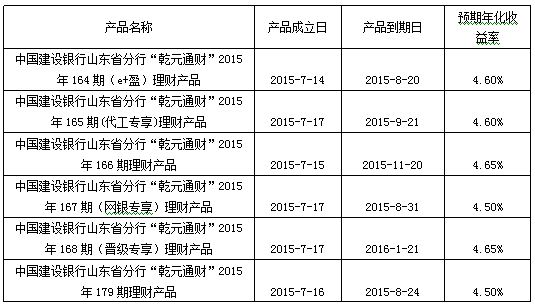 中国建设银行山东省分行“乾元通财”2015年第164 165 166 167 168 179 期理财产品成立公告