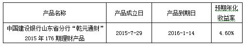 根据与投资者的约定,现将理财产品成立情况信息进行披露: