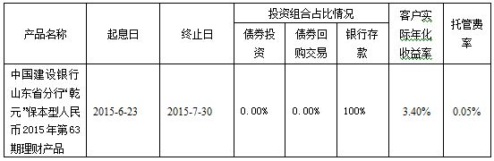 根据与投资者的约定,中国建设银行山东省分行发行的下列理财产品已经到期并完成资金兑付,现将有关情况公告如下: