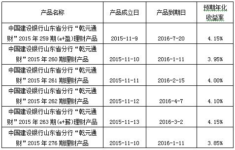 中国建设银行山东省分行“乾元通财”2015年6期理财产品成立公告