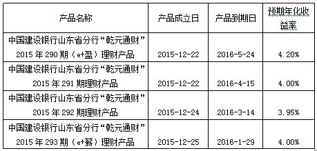 中国建设银行山东省分行“乾元通财”2015年4期产品成立公告
