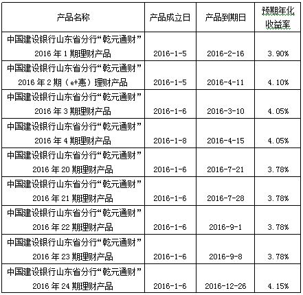中国建设银行山东省分行“乾元通财”2016年9期理财产品成立公告