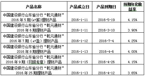 中国建设银行山东省分行“乾元通财”2016年6期产品成立公告