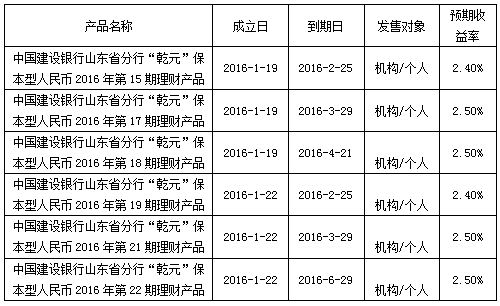 中国建设银行山东省分行“乾元”保本型人民币理财产品成立公告