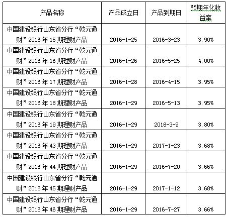 中国建设银行山东省分行“乾元通财”2016年9期产品成立公告