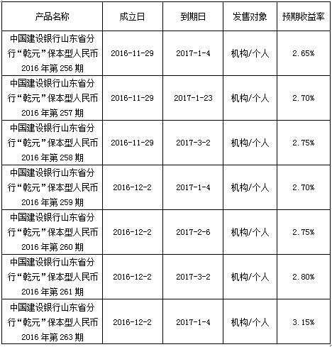 中国建设银行山东省分行“乾元”保本型理财产品成立公告