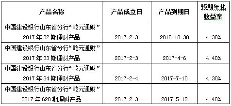 中国建设银行股份有限公司山东省分行“乾元通财”理财产品成立公告