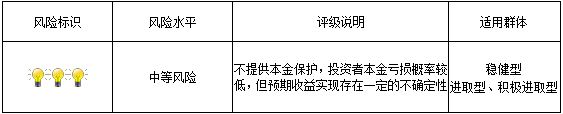 本期产品为非保本浮动收益型理财产品,不保证本金和收益,请您充分认识投资风险,谨慎投资。本期产品期限67天(中国建设银行有权对本期产品进行展期和提前终止),存续期内产品不接受申购或赎回申请。本期产品内部风险评级级别为3盏警示灯 ,风险程度属于中等风险。最不利情况下,资产组合无法回收任何本金和净收益,客户将损失全部本金。产品适合于稳健型、进取型及积极进取型客户。