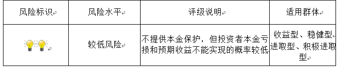 本期产品为非保本浮动收益型理财产品,不保证本金和收益,请您充分认识投资风险,谨慎投资。本期产品期限168(中国建设银行有权对本期产品进行展期和提前终止),存续期内产品不接受申购或赎回申请。本期产品内部风险评级级别为2盏警示灯 ,风险程度属于较低风险。最不利情况下,资产组合无法回收任何本金和净收益,客户将损失全部本金。产品适合于收益型、稳健型、进取型、积极进取型客户。