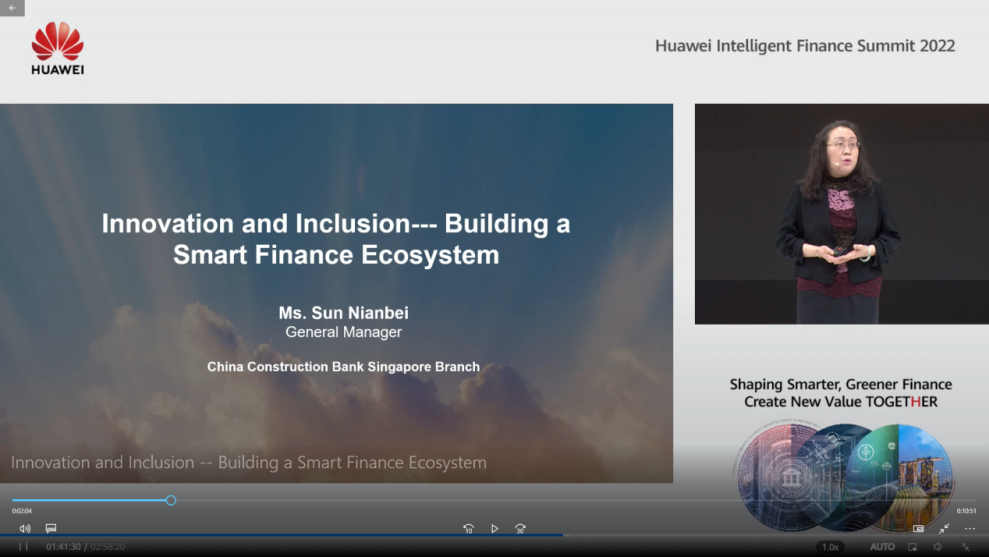新加坡分行应邀参加华为智慧金融峰会2022孙念北总经理作主题演讲