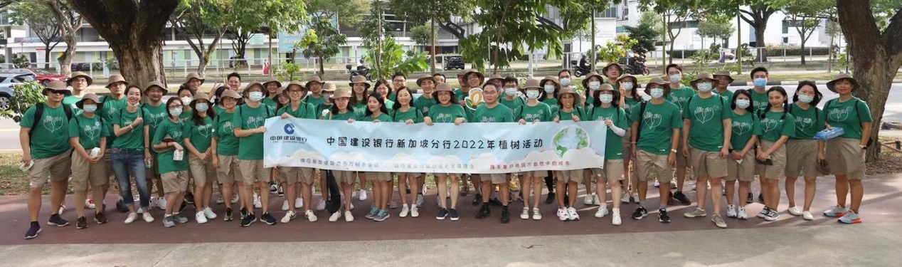 2022年9月16日 ,新加坡分行与新加坡国家公园局旗下注册慈善机构花园城市基金 (Garden City Fund) 共同举办植树活动。活动在新加坡东部的淡滨尼一街举行,分行员工及受邀客户代表共55人参加活动并种下50颗树苗。