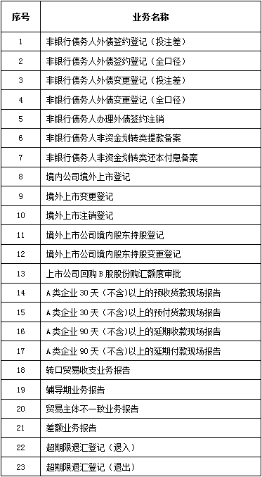 外汇业务网上预审批系统首批开放的外汇业务类型