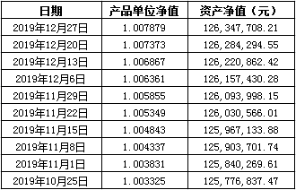 北京市分行“乾元—赢来赢往” 2019年第7期挂钩类净值型人民币理财产品(挂钩黄金欧式双边鲨鱼鳍结构)(产品编号BJ2019YLYW000FB17)净值公布如下: