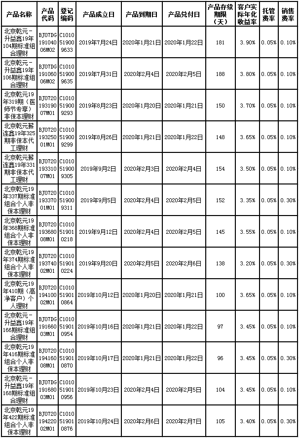 上述产品已按照说明书中关于资产的投资类型和比例的约定进行投资,所投资非标准化债权资产已进行披露,产品运作收益超出客户实际年化收益率、托管费率及销售费率的部分将作为产品的浮动管理费用,到期收益分配详见产品说明书。