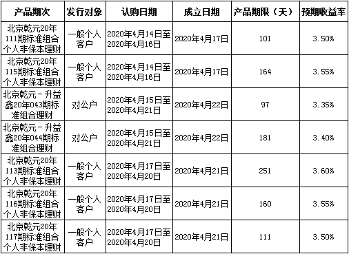 中国建设银行北京市分行定于2020年4月13日至2020年4月19日发行理财产品,现将相关发行情况公告如下: