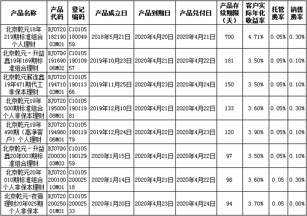 中国建设银行理财产品终止及清算公告2020年4月24日