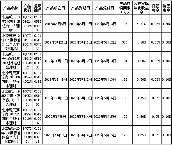 中国建设银行理财产品终止及清算公告2020年5月18日