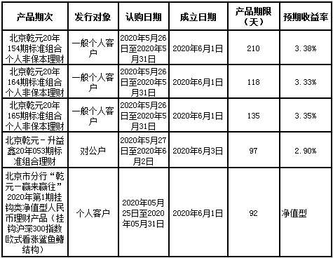 中国建设银行北京市分行定于2020年5月25日至2020年5月29日发行理财产品,现将相关发行情况公告如下: