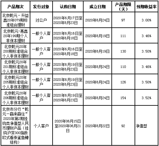 中国建设银行北京市分行定于2020年6月15日至2020年6月19日发行理财产品,现将相关发行情况公告如下: