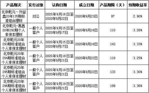 中国建设银行北京市分行定于2020年9月14日至2020年9月18日发行理财产品,现将相关发行情况公告如下: