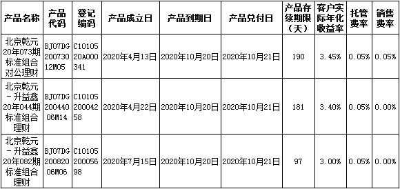 中国建设银行理财产品终止及清算公告2020年10月26日