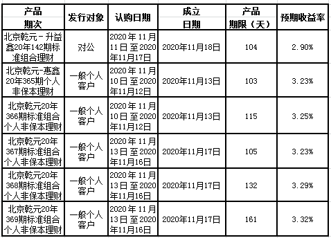 中国建设银行北京市分行定于2020年11月9日至2020年11月13日发行理财产品,现将相关发行情况公告如下: