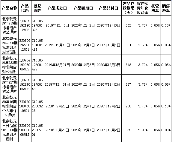 中国建设银行理财产品终止及清算公告2020年12月7日