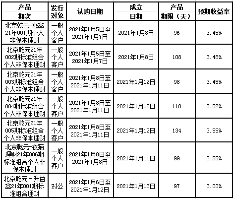 中国建设银行北京市分行定于2021年1月4日至2021年1月8日发行理财产品,现将相关发行情况公告如下: