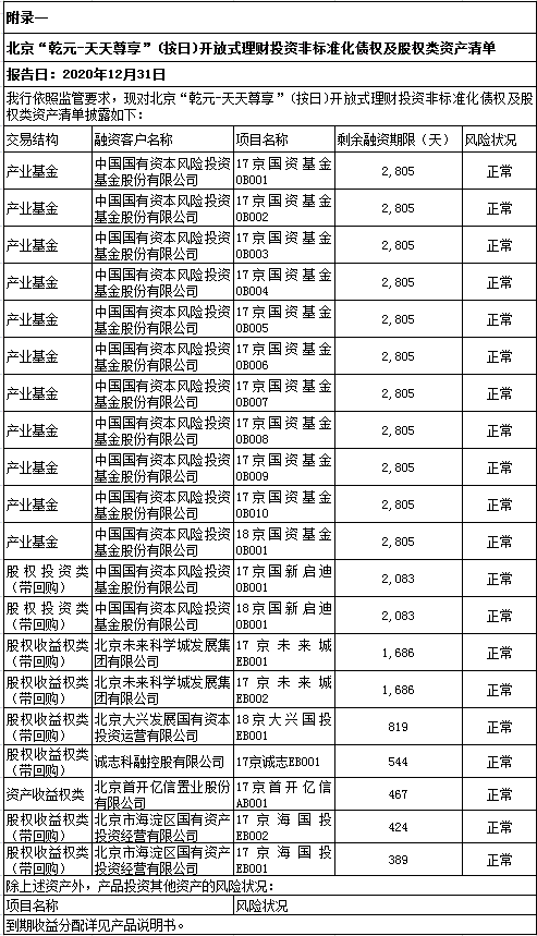 九、投资非标准化债权及股权类资产清单(见附录一)