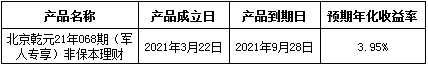 根据与投资者的约定,现将理财产品概况披露如下: