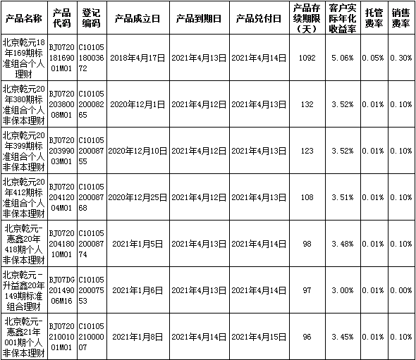 中国建设银行理财产品终止及清算公告2021年4月19日