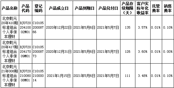 根据与投资者的约定,中国建设银行发行的下列理财产品已经到期并完成资金兑付,现将有关情况公告如下: