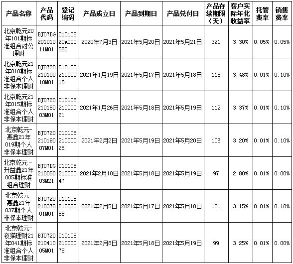 中国建设银行理财产品终止及清算公告2021年5月24日