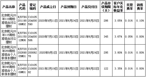 上述产品已按照说明书中关于资产的投资类型和比例的约定进行投资,所投资非标准化债权资产已进行披露,产品运作收益超出客户实际年化收益率、托管费率及销售费率的部分将作为产品的浮动管理费用,到期收益分配详见产品说明书。