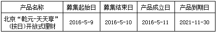 “乾元-天天享”(按日开放型)人民币非保本理财产品于2016年5月11日正式成立。截至报告日,本产品规模为7,022,645,523.35元,杠杆水平符合监管要求。