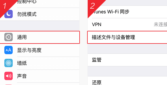 然后在设备中点击进入【设置>>通用>>描述文件】,找到刚才同名的描述文件