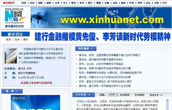 5月20日下午,中国建设银行内蒙古分行行长黄先俊、湖北省黄冈蕲春支行副行长李芳做客新华网,谈新时代劳模精神。访谈内容简要摘编如下: