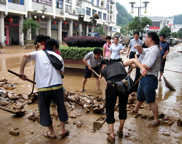 连日来,福建省三明地区遭受特大暴雨袭击,三明分行立即启动防灾应急预案,严格执行值班与报告制度,广大员工发扬连续作战、不怕疲劳的精神,全力抢救建行财产,保护员工和客户人身安全,保证网点正常营业。目前受内涝影响的泰宁支行营业秩序恢复正常。图为泰宁支行受灾和自救场面。