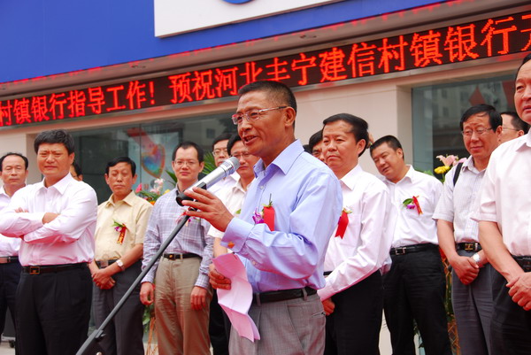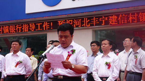 中国建设银行投资理财总监毛裕民代表建设银行在开业仪式上致辞,介绍了建设银行承担社会责任,支持村镇银行建设、推动三农发展方面取得的成效,并对丰宁建信村镇银行的发展提出了期望。