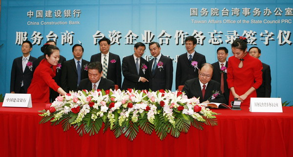 中国建设银行与国务院台湾事务办公室签署《服务台商、台资企业合作备忘录》