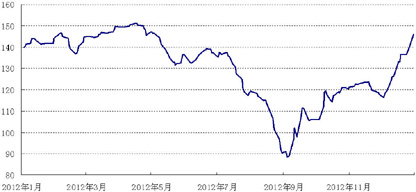 预计2013年铁矿石平均价格将较今年有所抬升,年初铁矿石价格冲高回落后,或将从二季度起呈现震荡走升的态势。预计价格波动区间预计在[100,160]美元/吨。(袁匡济)