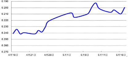 上周,人民币对美元即期成交价多在波幅上限附近。上周五,人民币对美元中间价报6.1997元,较前周小幅下降19个基点;即期价盘终收于6.1419元,较前周几乎没有变化。