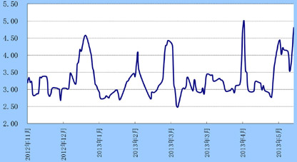 货币市场:上周,月末叠加财税上缴因素,资金面再度收紧,但央行仍在公开市场净回笼170亿元,7天质押式回购利率冲高至4.81%,较5月24日上行65基点。