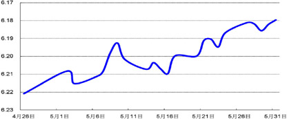 上周,人民币兑美元中间价延续上升态势,屡创新高,并于上周五报6.1796,突破6.1800整数关口,创2005年汇改来新高,较5月24日上涨0.11%;欧元兑美元上涨0.51%,报1.2995美元。