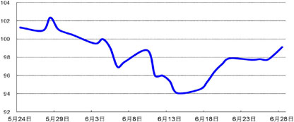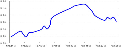上周,人民币兑美元中间价呈横盘整理走势,当周变化不大,于上周五报6.1787元,较6月21日微跌0.03%;欧元兑美元下跌0.87%,报1.3008美元。