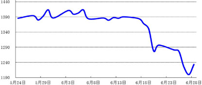 上周,国际金价继续下跌,最低见1199.79美元/盎司,之后回调至1233.14美元/盎司,全周下跌63.61美元/盎司;布伦特原油则上涨1.25美元/桶至102.16美元/桶。