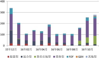 产品发行:35家机构共发行了279款产品,债券型产品逆市增加