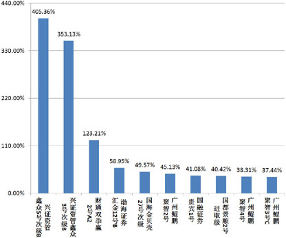 从表现最好的产品收益情况看,排名前十产品中,次级产品仍是主流,但月度收益最高的两只产品月末净值都不足0.3。(图10)